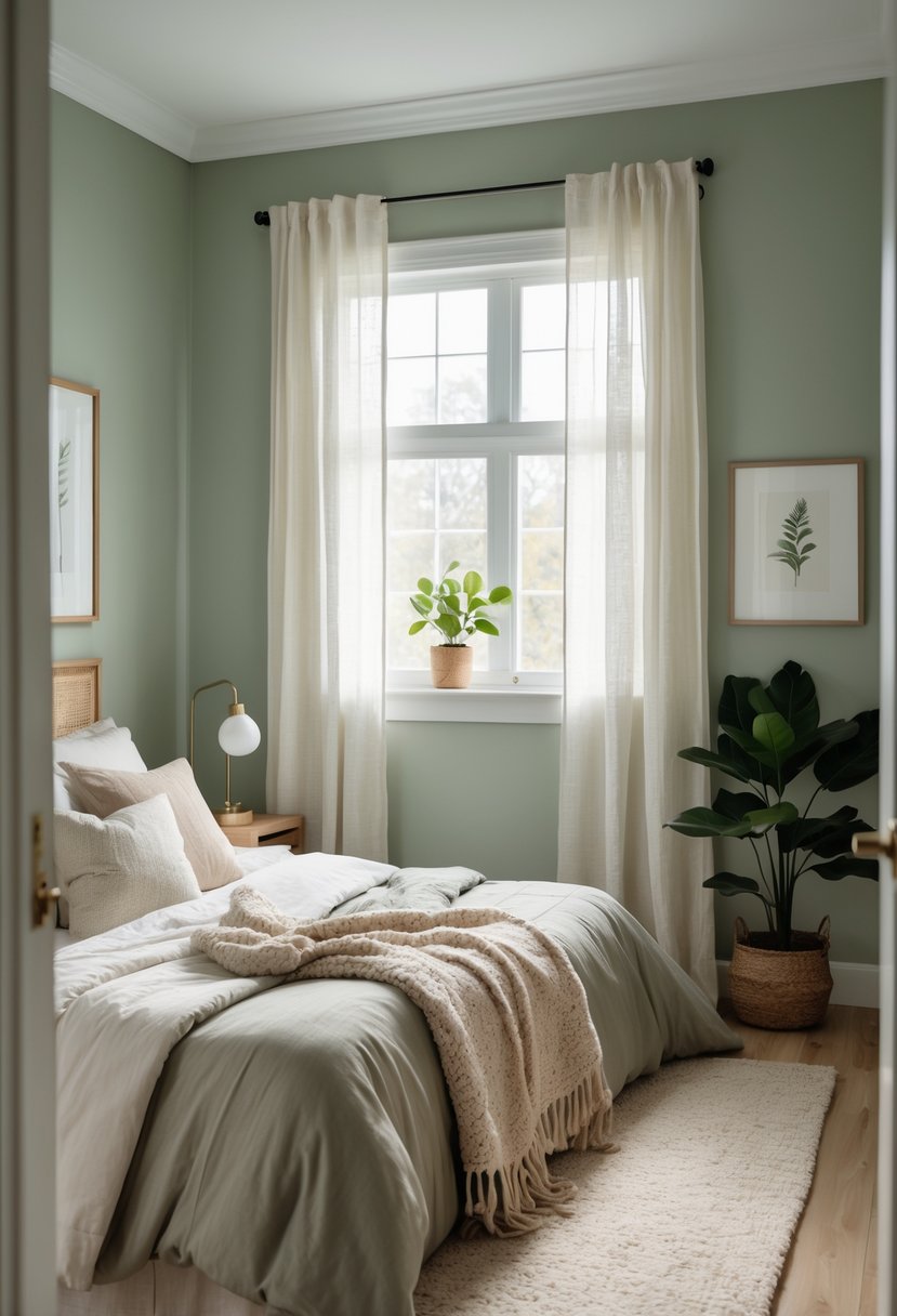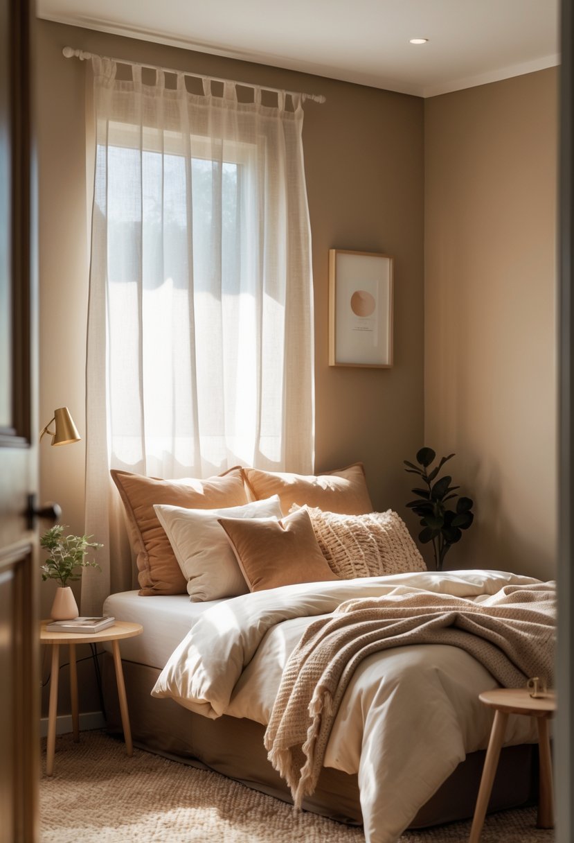 Using warm, neutral earth tones like beige, taupe, and soft olive green helps create a calm and cozy feel in small bedrooms. These colors make a space feel more open without being harsh.