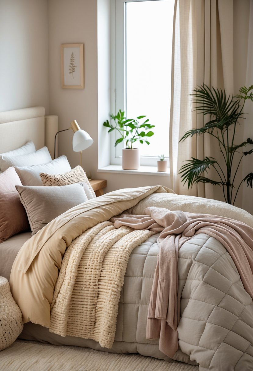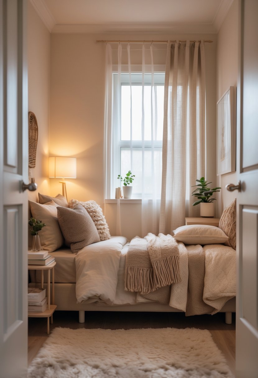 They can make a small bedroom feel warmer and more inviting by adding layers of blankets and pillows. Mixing different textures like smooth linens, chunky knits, or velvet creates visual interest without taking up space.