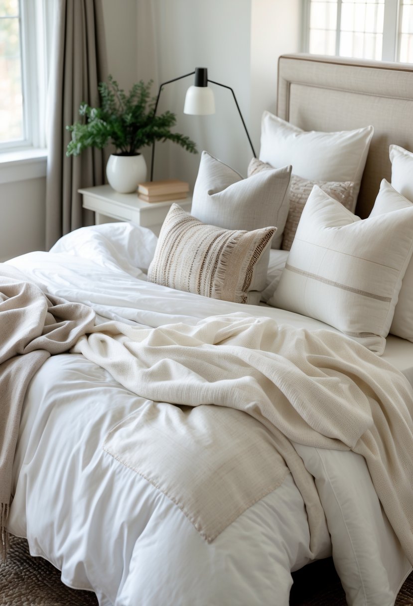 Start with a base color for sheets that is neutral or soft, such as white, beige, or light gray. This sets a calm background. Add interest by choosing two or three complementary colors for blankets and duvet covers. For example, pairing navy with soft pink and cream can work well.
