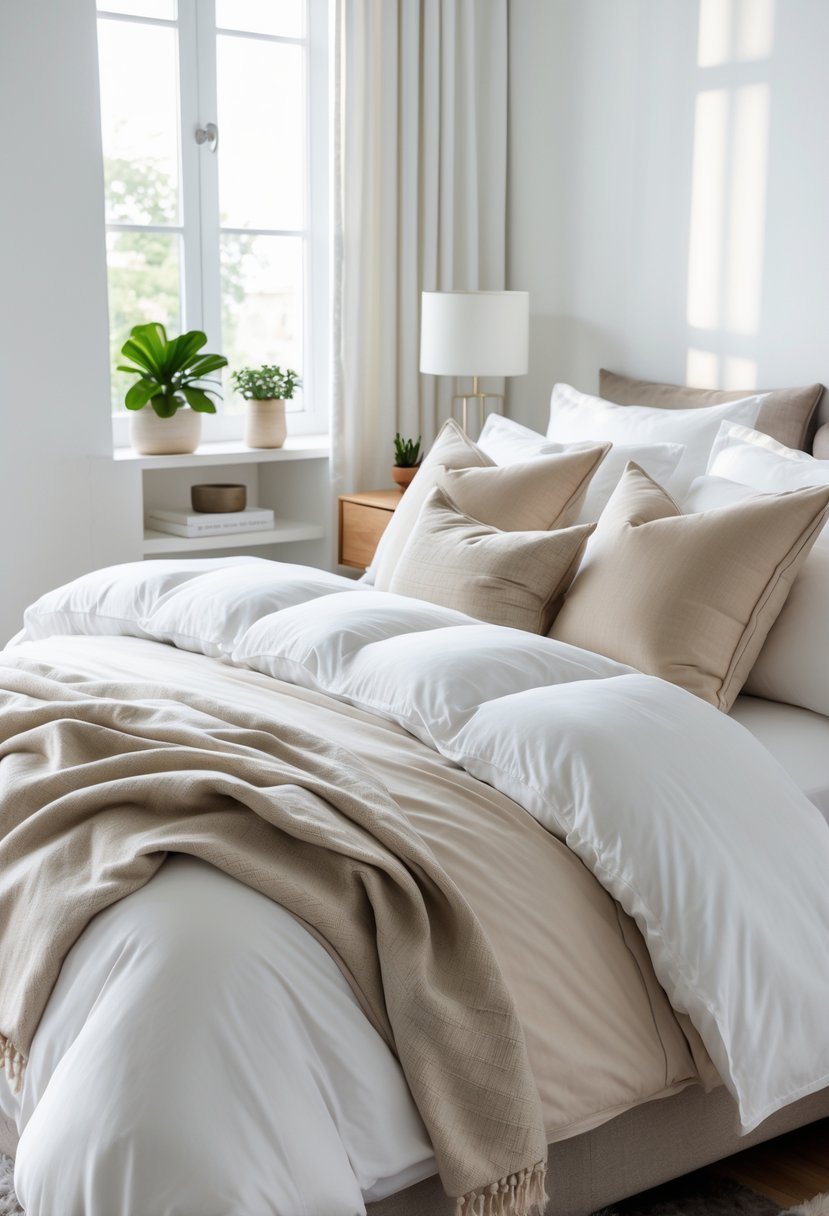 Using neutral colors like whites, creams, and soft grays helps keep the bedding looking fresh and calm, just like in a luxury hotel. I add simple patterns or subtle textures to avoid plainness without overwhelming the space.