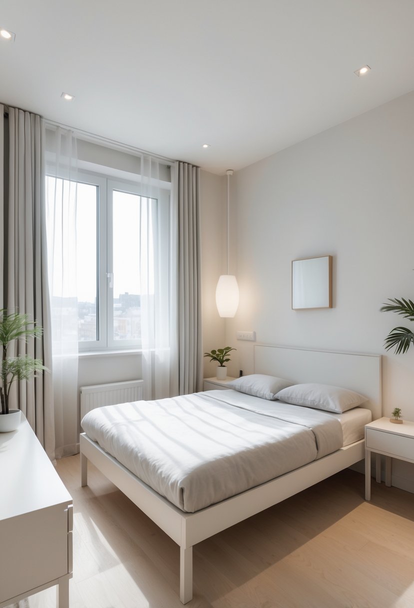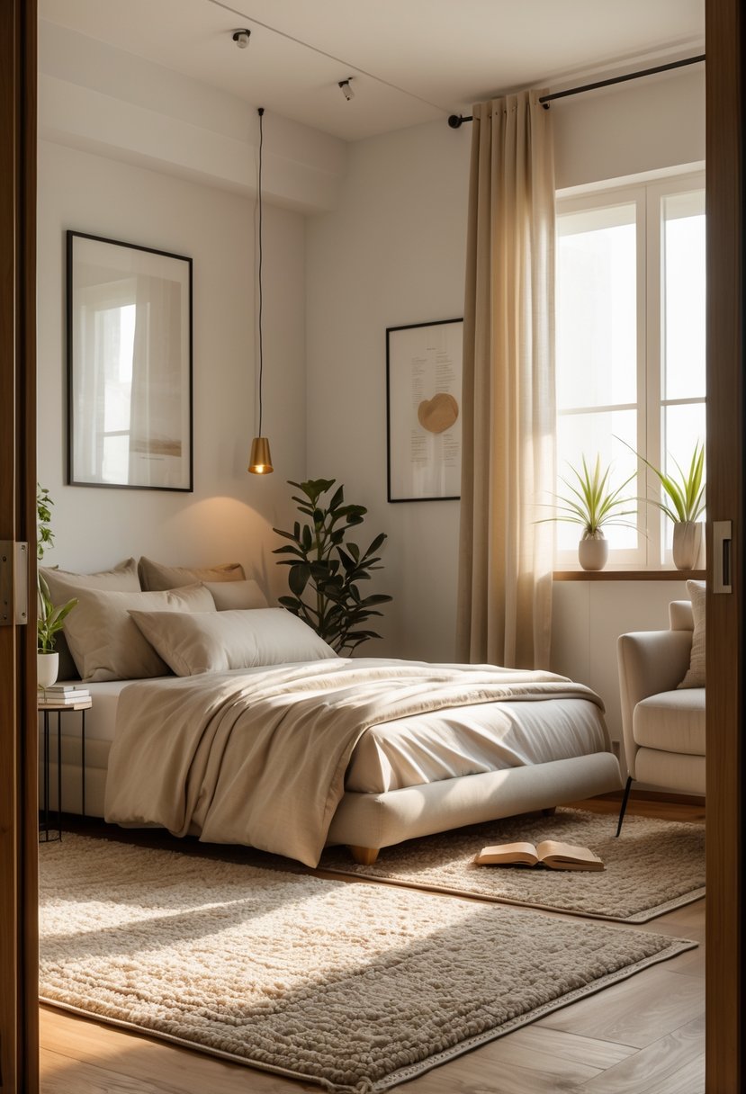 Light, neutral colors help make a small bedroom feel more spacious. Shades like soft white, beige, and light gray reflect light well and create a calm atmosphere.