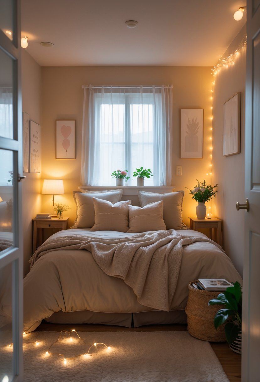 Dimmable lights help create a warm, inviting mood in a small bedroom. They allow couples to adjust brightness to suit different times and activities. Using bedside lamps or overhead dimmable fixtures can make the space feel cozy and calm.